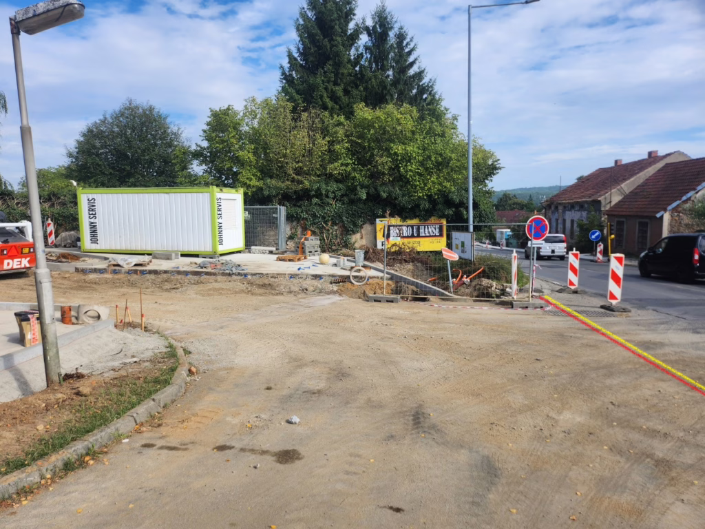 Vlevo nahoře snímku je křižovatka ulic Návršní a Na vyhlídce (u dětského hřiště a hnízda pro tříděný odpad). Tam má dle projektu dojít ke změně, jejíž absurdita mi vyrazila dech hned dvakrát: má tam vzniknout kruhový objezd (!!) a povrch má být z žulových kostek (!!!) Proč kruhový objezd na mikroskopické křižovatce pouze s místním provozem? A hlavně: proč žulové kostky? Aby se utratilo co nejvíce peněz?
