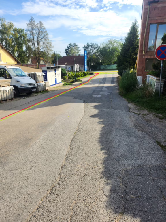 Kdo chce vidět na vlastní oči, může se přijít podívat na Novou Hospodu. Nebo si prohlédnout fotografie. Na těch je vyznačena hranice obecního pozemku zeleně, soukromého pozemku červeně a státního pozemku (Stará Benešovská silnice) žlutě. Každý na vlastní oči může vidět, do koho majetku vedení obce investuje naše peníze. Fotografie jsou ze soboty 9. září 2025.
