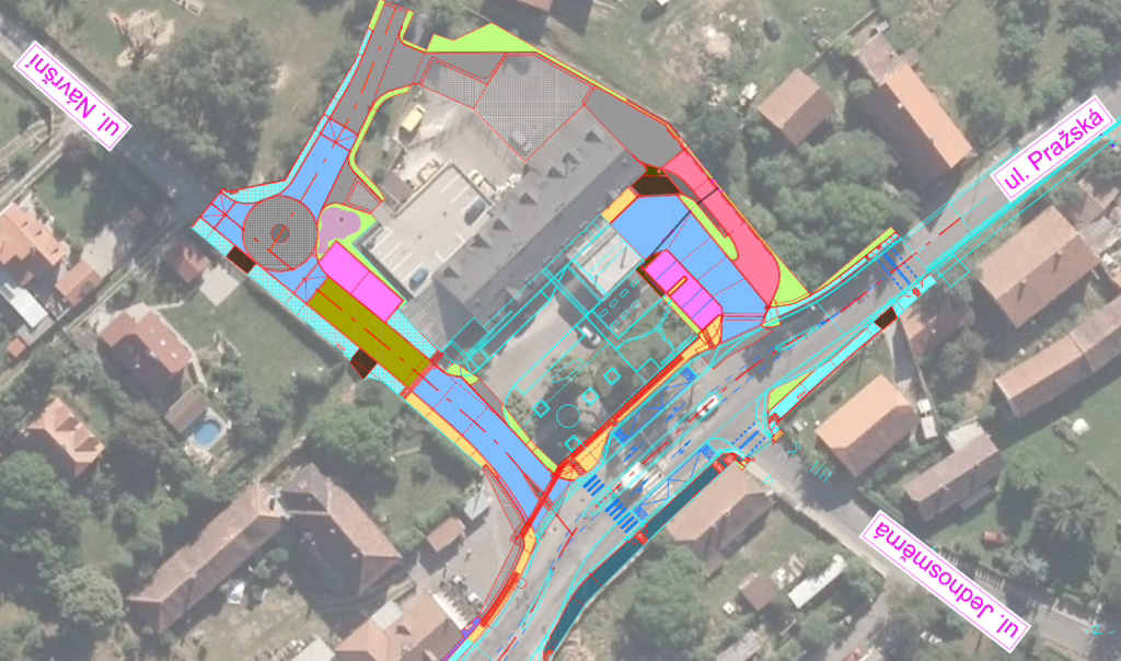 Toto je výstup projektanta, který zpracoval zadání obce. Nepochopitelné věci, jako je kruhový objezd pro průjezd velkých cisteren pohonných hmot u dětského hřiště na Nové Hospodě. Ale především zastávky naproti sobě, což v žádné bezpečnostní studii, která je k dispozici, nebylo. Zastávka směrem do Olešovic se tak nelogicky ocitá bezprostředně před odbočkou do ulice Jednosměrná a stojící autobus tam tak bude komplikovat rozhled a odbočení. To bezpečnost v místě spíše zhorší. Jediné vysvětlení, které mne k posunu zastávek napadá, je že je to účelové. Právě posunutím zastávek starosta zdůvodňuje dar JUDr. Honzíkovi. Ale zastávky se vůbec posunovat neměly a nemusely. Návrhy dopravních odborníků byly jiné. A v komunikaci z roku 2021, kdy starosta Čermák slíbil JUDr. Honzíkovi, že obec ponese všechny náklady, o posunu zastávky není ani slovo.