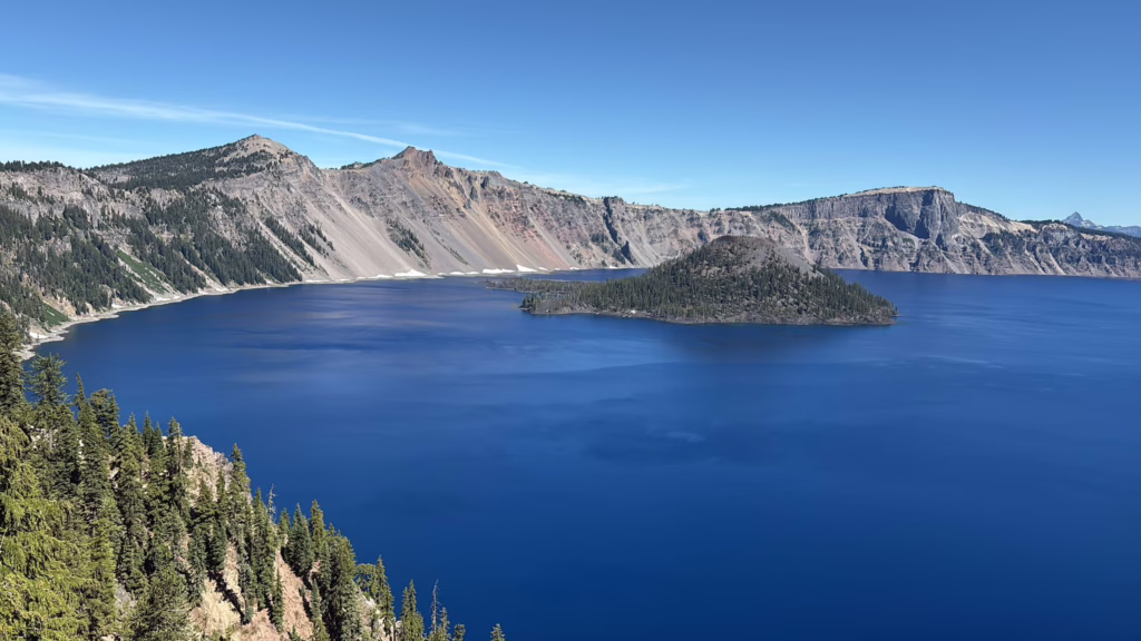 Po přechodu hranice Kalifornie a Oregonu (1 689. míle) se Mirek dostane až do poloviny Oregonu. Fotky z národního parku Crater Lake jsou úchvatné. Jak ostatně napovídá název, jezero je v kráteru sopky Mount Mazama. Ta vybuchla zhruba před 7 700 lety, její kužel zkolaboval a vytvořil obrovskou kalderu.